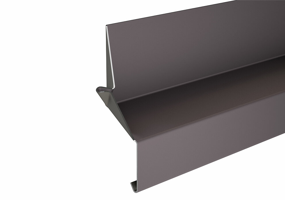 På oversiden av soffit-platen er det en 90° bøy i retning av midten av vinduet.