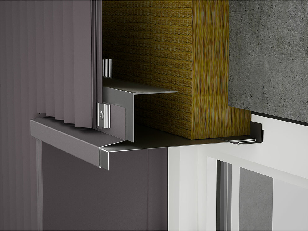 Festebrakettene for soffit-platen skrues deretter på underkonstruksjonen til venstre og høyre for vinduet. Samtidig festes koblingslistene for støpeplaten og koblingsstrimmelen for vindusforlengelsen også til vindusrammen eller murverket.