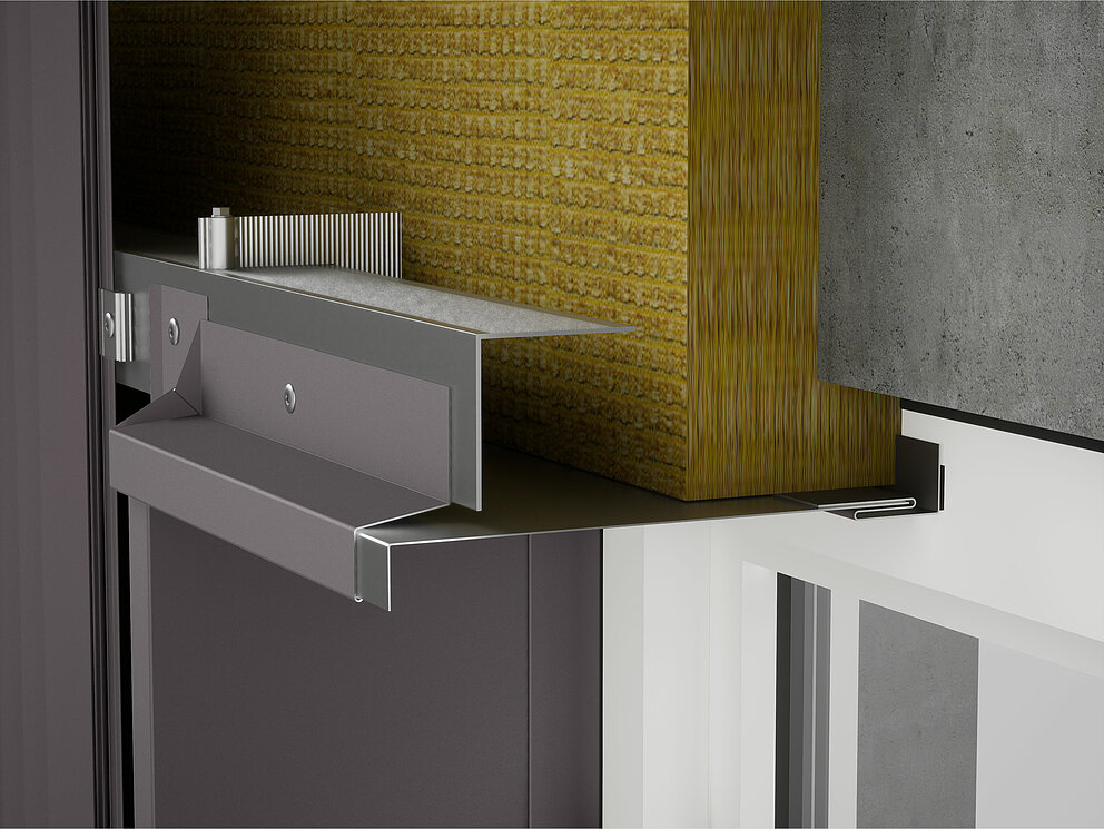 Vinduskarmen kan nå henges på støttelisten og monteres på vinduskarmen, idet det tas hensyn til kundens krav. Deretter monteres pluggstrimlene for den laterale støpejernsplaten.