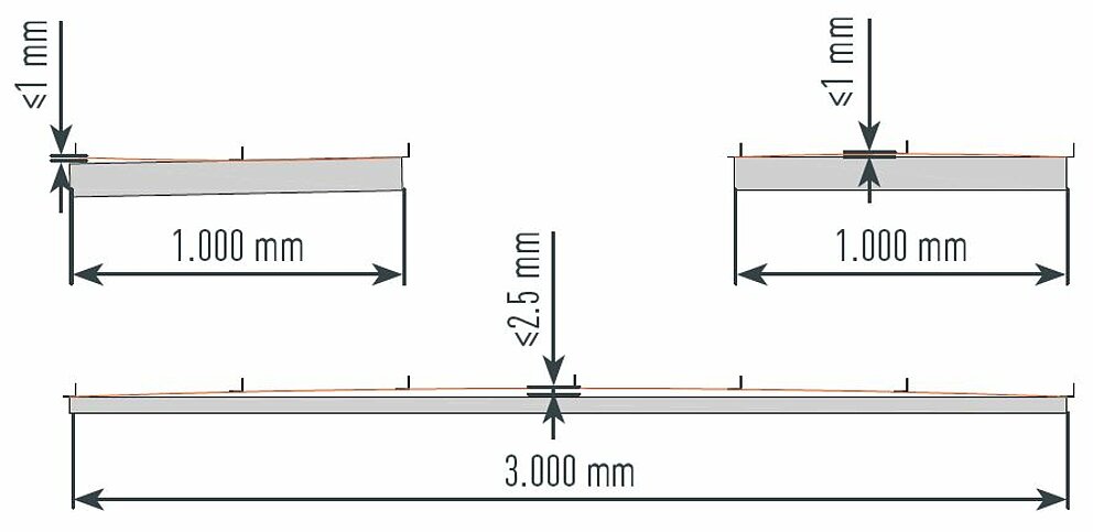 Selv ved fagmessig montering med hensyn til faste og glidende punkter kan det, avhengig av farge, glansgrad og lysinnfall, oppstå bølgeform under temperaturendringer.