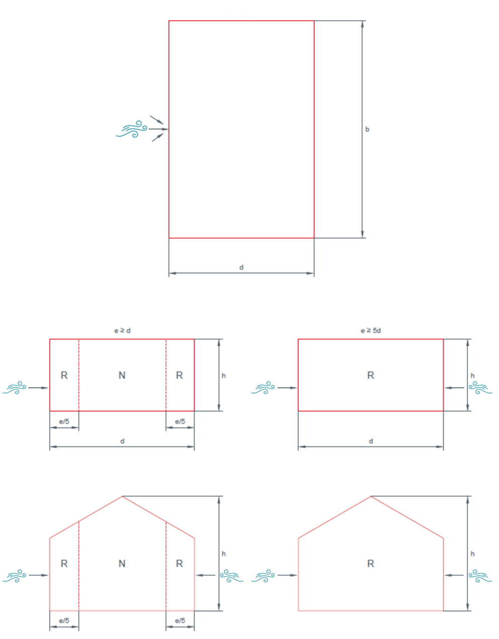 Det angitte minsteantallet tar hensyn til en delvis sikkerhetsfaktor på 1,35 og skal forstås som teoretisk bestemte verdier. R = kantområde (ytre trykkoeffisient cpe = –1,4), N = normalområde (ytre trykkoeffisient = –1,1).