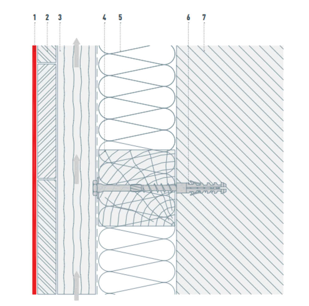Avhengig av materialvalget for underkonstruksjonen må lufteromstverrsnittet oppfylle de nasjonalt gjeldende kravene. For å sikre en uhindret strømning i lufteromsnivået, må støtteprofilene justeres vertikalt.