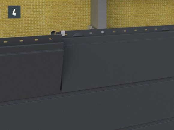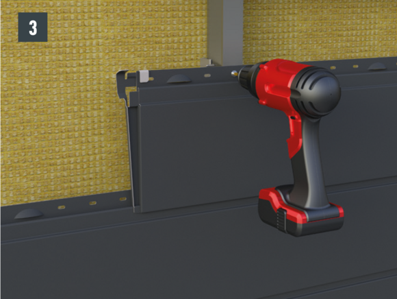 • Monter siding med ferdigmontert skjøt i henhold til retningslinjene for legging av siding, og fest til underkonstruksjonen (fig. 3).