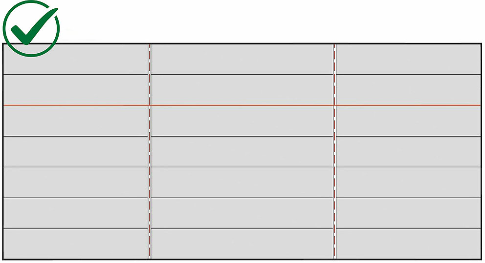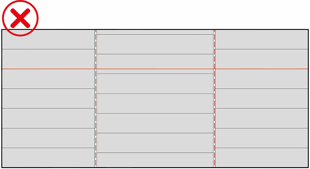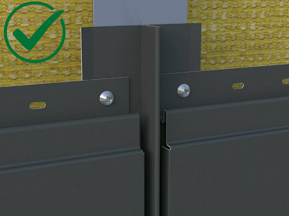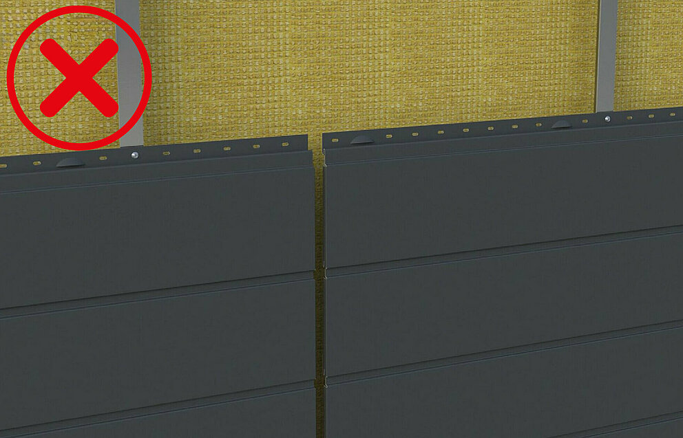 Vær spesielt forsiktig for å sikre at linjen og flukten opprettholdes etter avbrudd, for eksempel i tilfelle av buttskjøter. Til dette formålet anbefales det å feste Siding, Siding.X og Siding perforert med kontrollinjer med jevne mellomrom.