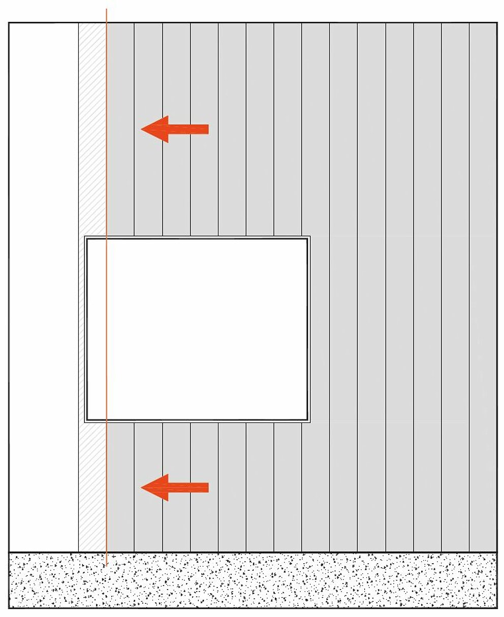 Det er fornuftig å feste byggebredden på siding rundt vinduet både vertikalt og horisontalt, ellers er det fare for at det kommer ut av posisjon.