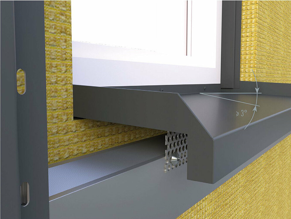 Vinduskarmen skal dimensjoneres med et fall på minst 3°. Vær oppmerksom på nasjonalt gjeldende krav.