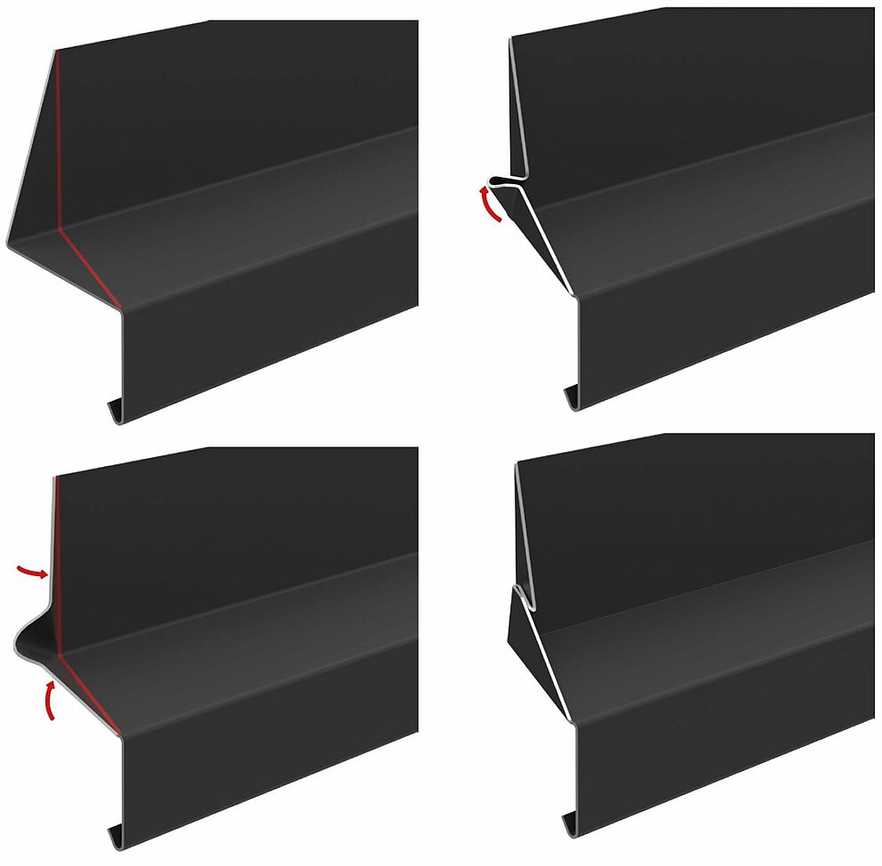 For å øke stivheten til siding, er det tilrådelig å lage en omkanting eller en opphøyning. Sørg for at det er tilstrekkelig åpning av tilførselsluften.