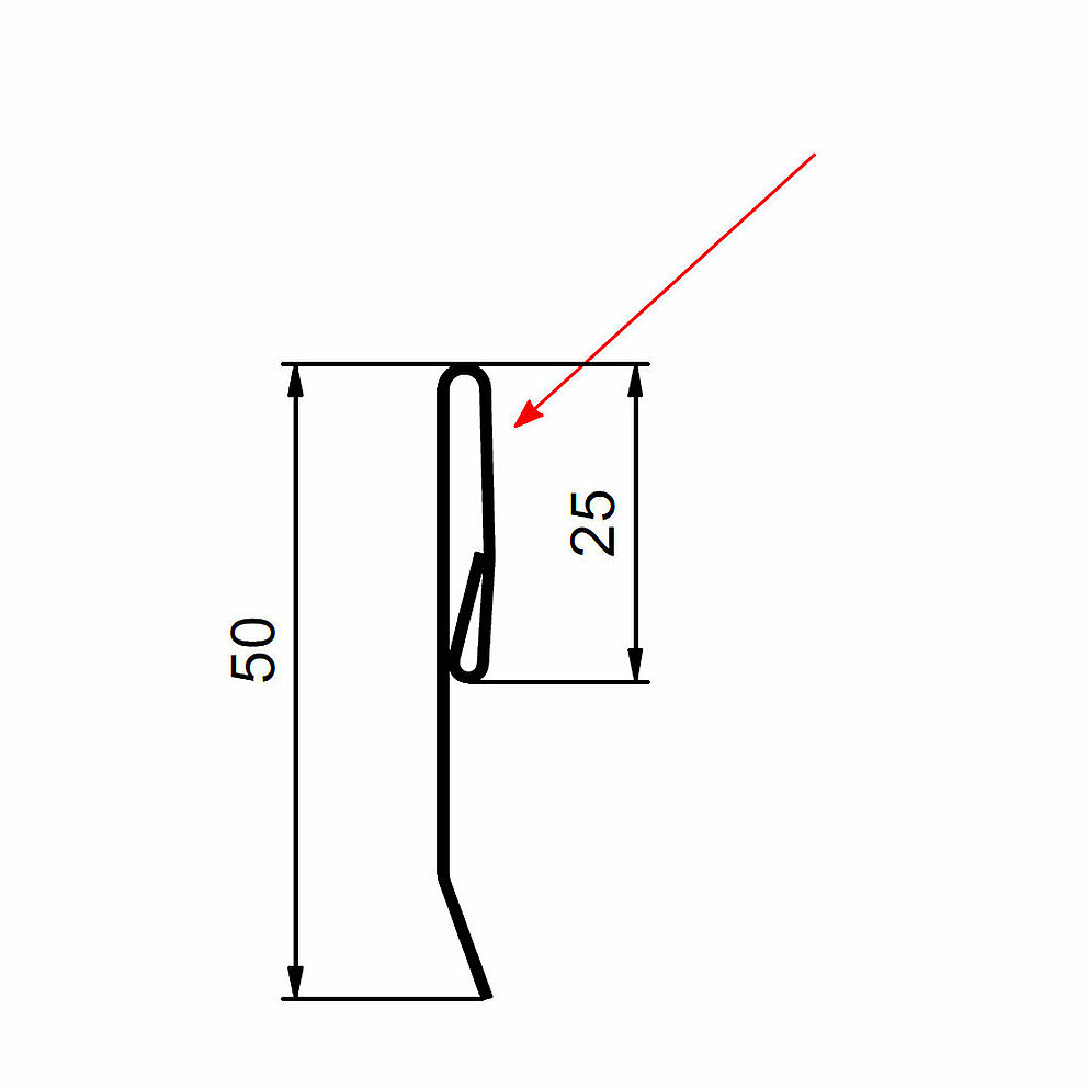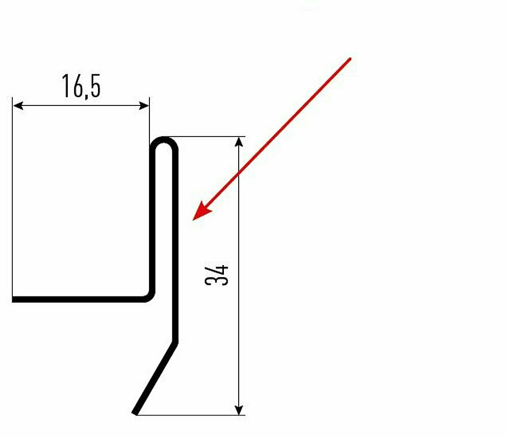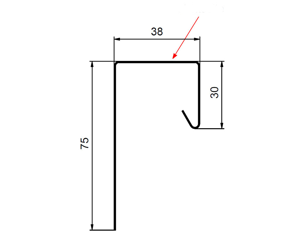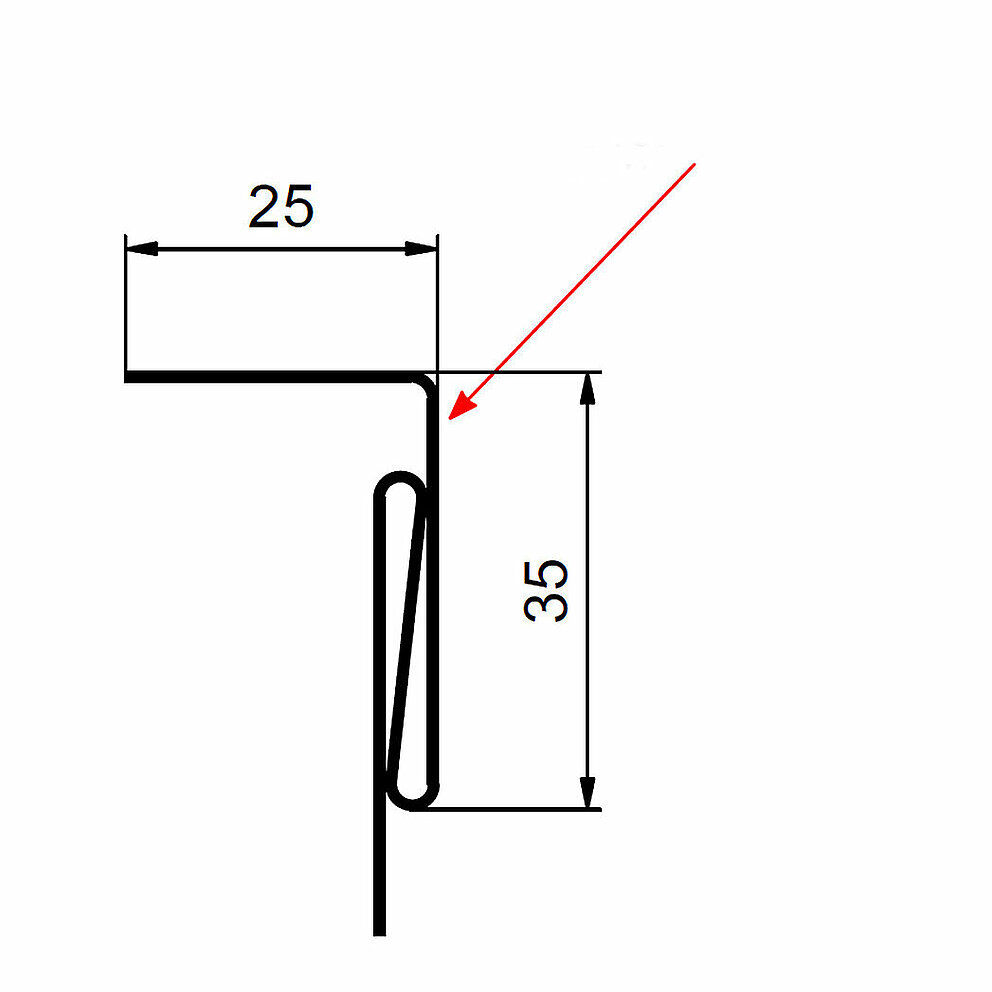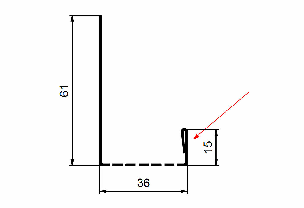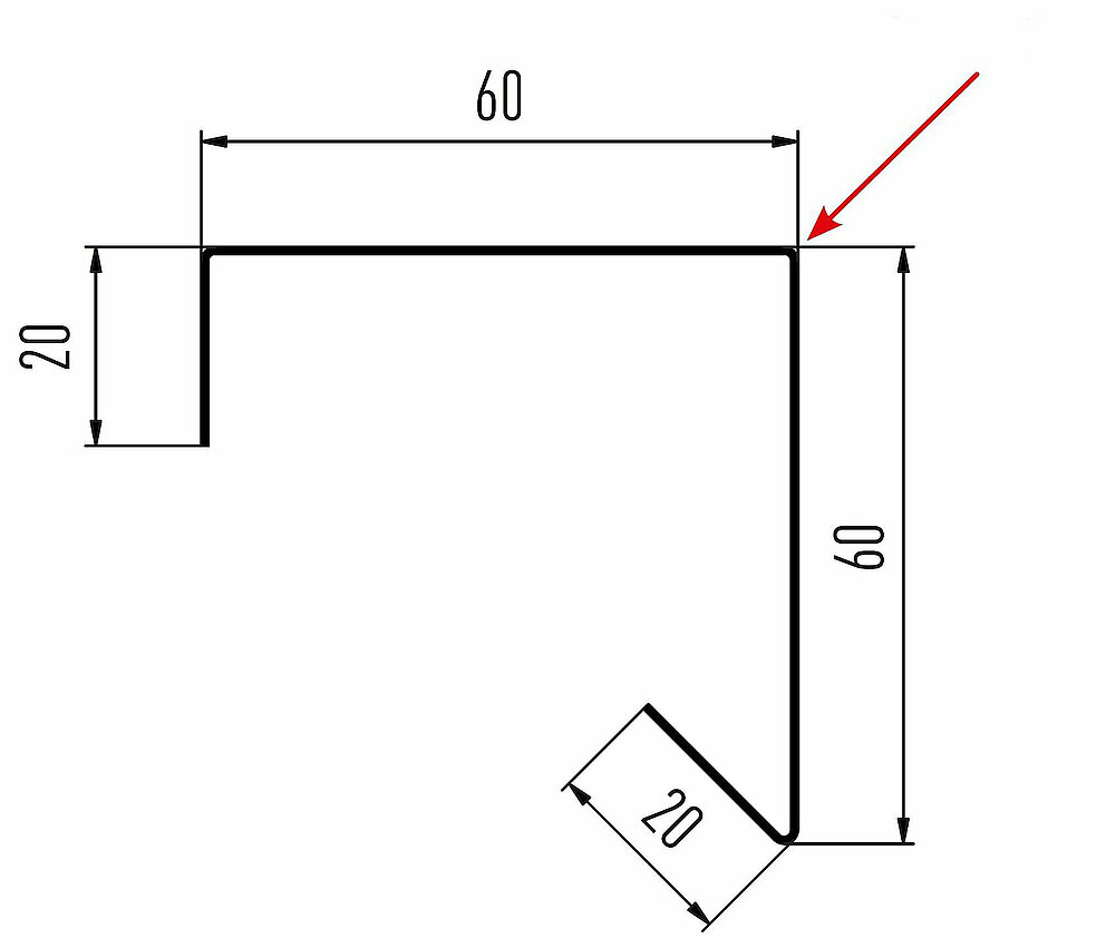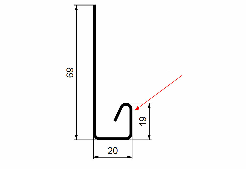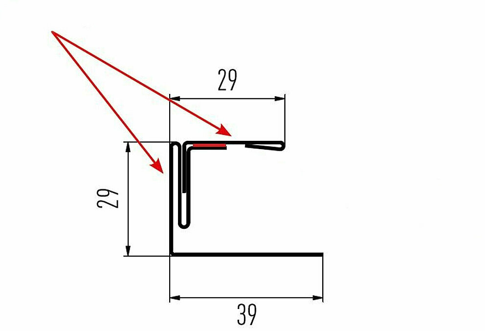 Den røde pilen markerer hver gang fargesiden på tilbehørsprofilene.