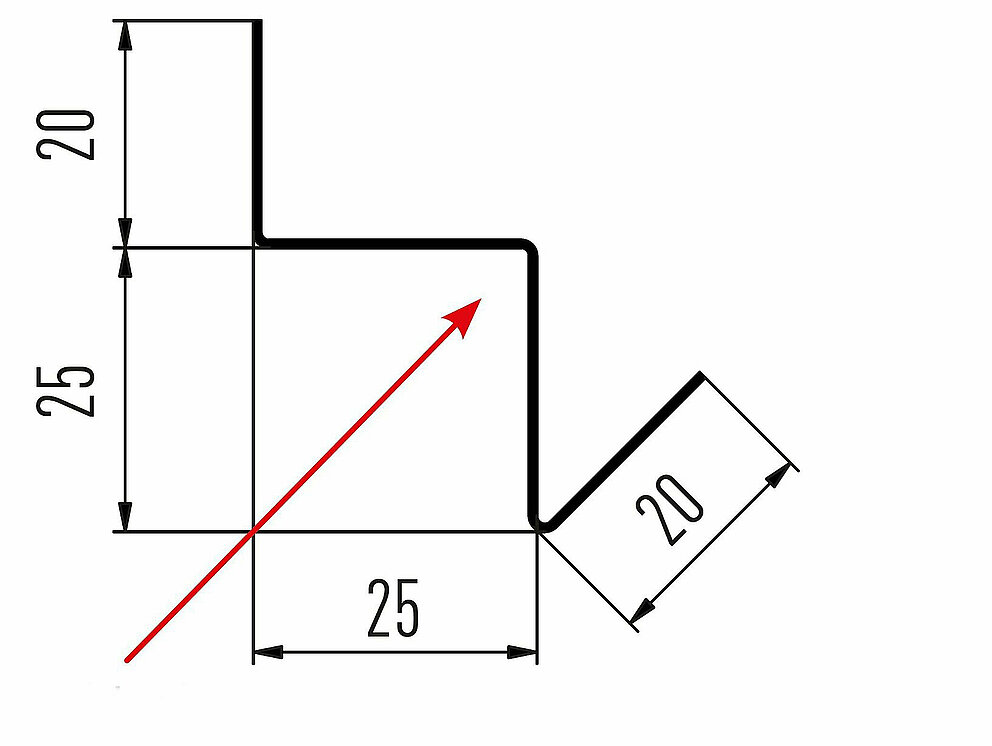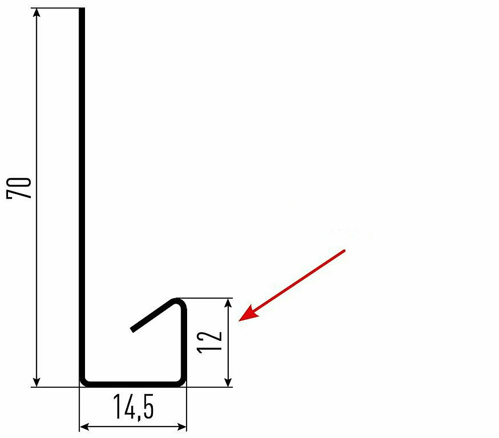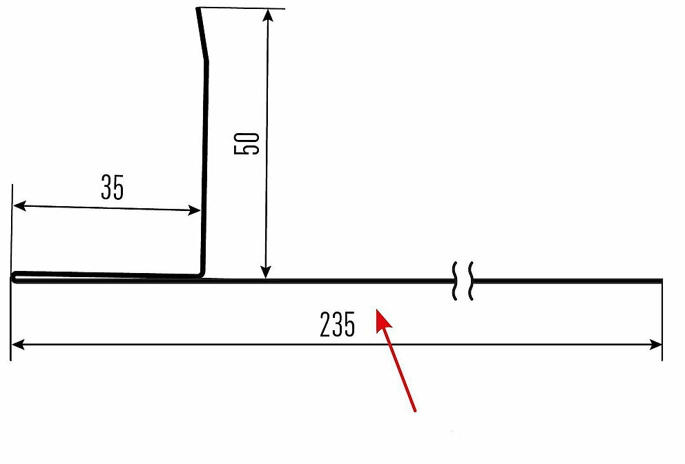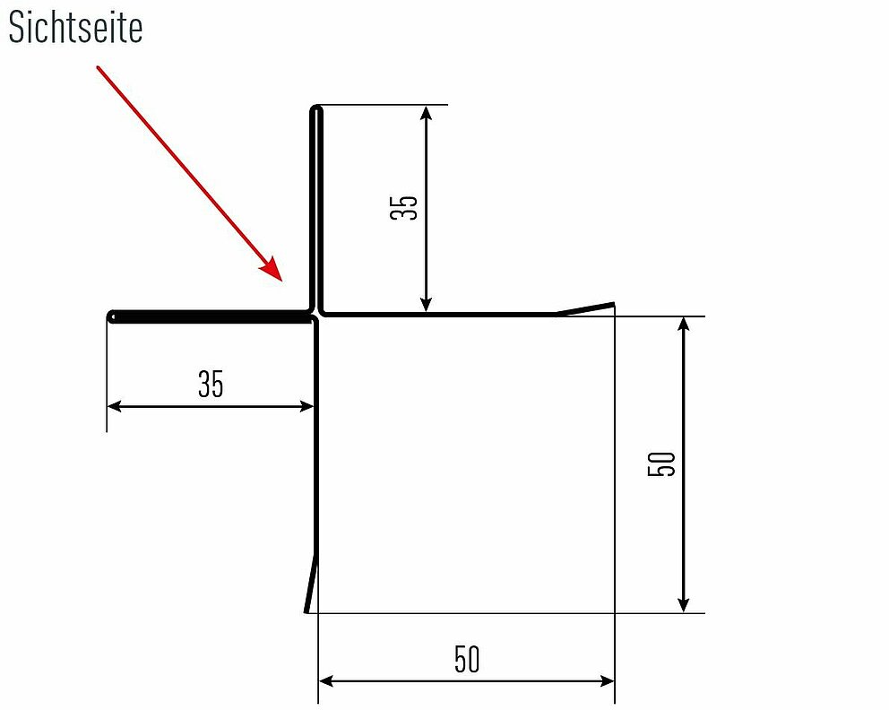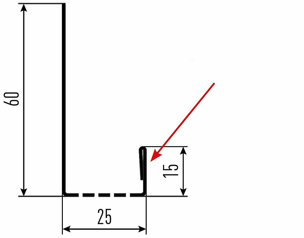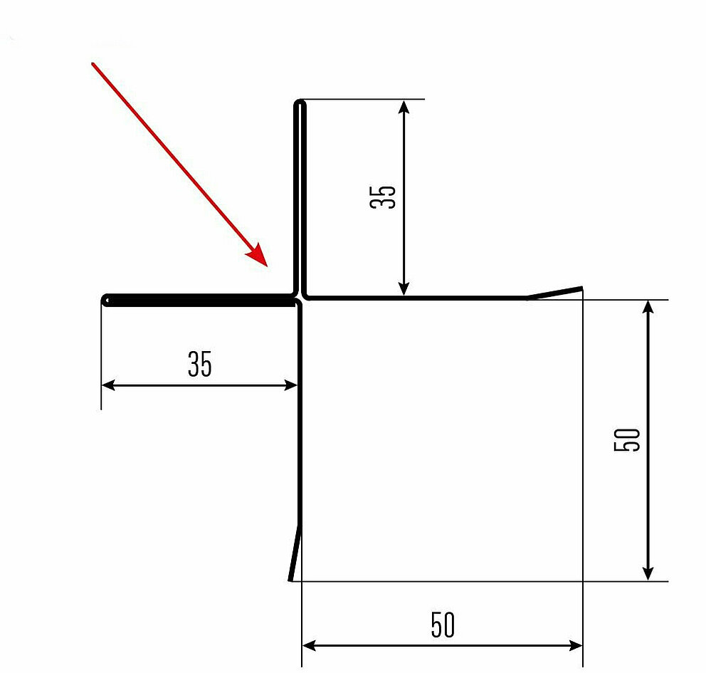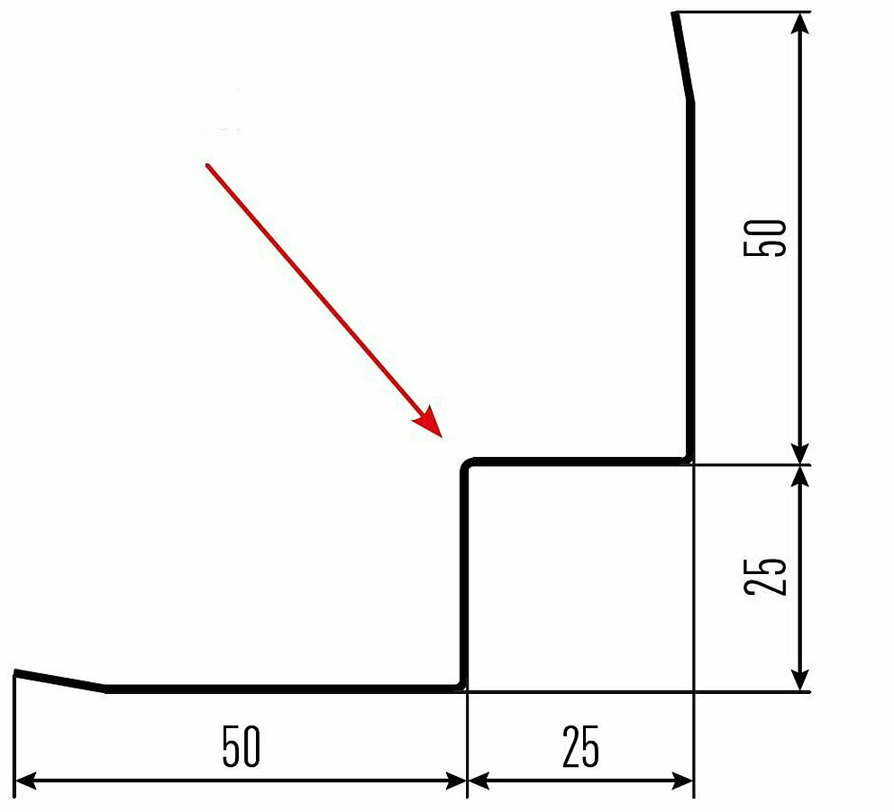 Den røde pilen markerer hver gang fargesiden på tilbehørsprofilene.