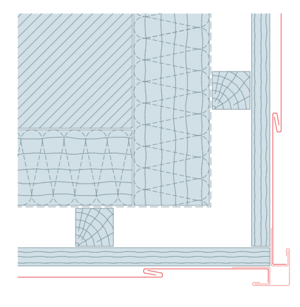 Innvendige og utvendige hjørner lages vanligvis med to lommeprofiler og en hjørnevinkel. Sørg for at lommeprofilene monteres helt vertikalt og tilpasset til utvidelse, og at feste- og glidepunktene er riktig plassert.