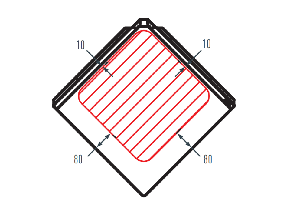 Hvis du monterer noe på fasaden (f.eks. lamper), må du ta hensyn til det tillatte monteringsområdet for veggrombe 44 × 44 når du monterer dem. Hvis det ikke er mulig å vedlikeholde monteringsområdet, må en bunnplate falses inn.