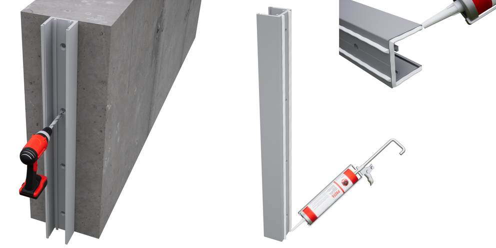 • Påfør to striper med vanntett og varig elastisk tetningsmasse på baksiden av U-profilen.