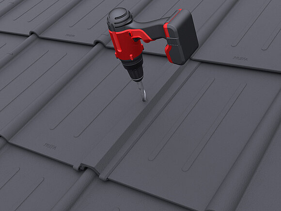 Hvis det er en overlapping eller midtrille av takplatene nøyaktig over bjelken (i monteringsområdet til hengselskruen), kan Sunny spesial brukes i stedet for å montere en underlagsplate.
