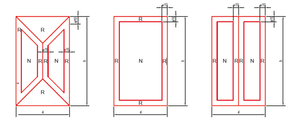 e=b eller 2*h (den minste verdien er avgjørende) – avstand refererer til basisarealet