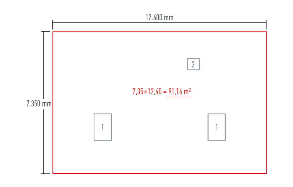 I beregningen tas det ikke hensyn til avskjæringer samt vindus- og skorsteinsåpninger. I normale tilfeller (med åpninger opp til ca. 3 m²) elimineres avskjæringene og kompenseres ved avrunding av emballasjeenheter.