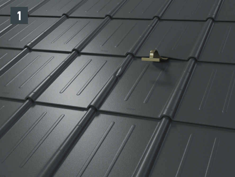 • Før du setter inn den nye takplaten, stram begge yttersporene og åpne den øvre falsen litt. Den nye platen kan tekkes med begge de laterale sporene over de andre (fig. 5) – unntak: i vinkelrenne- eller møneområdet.