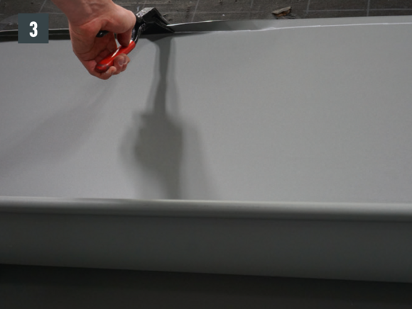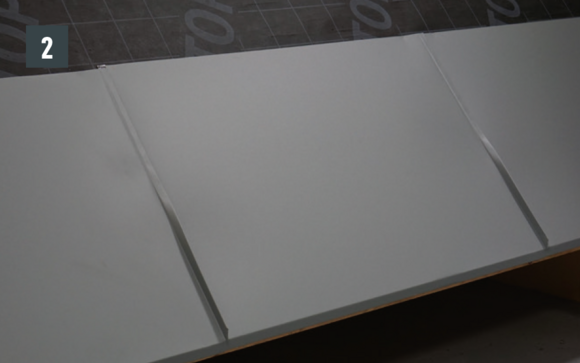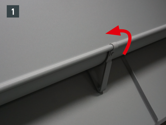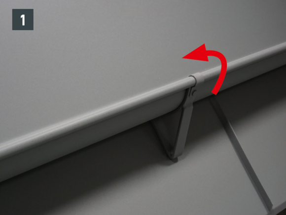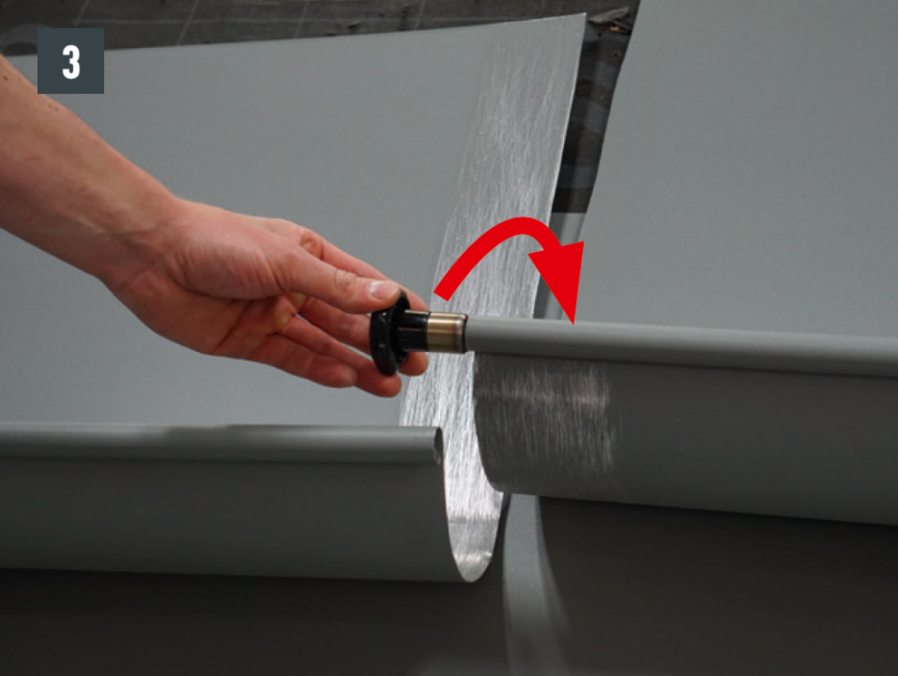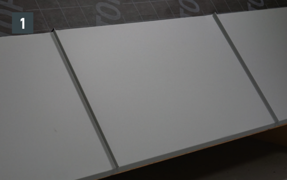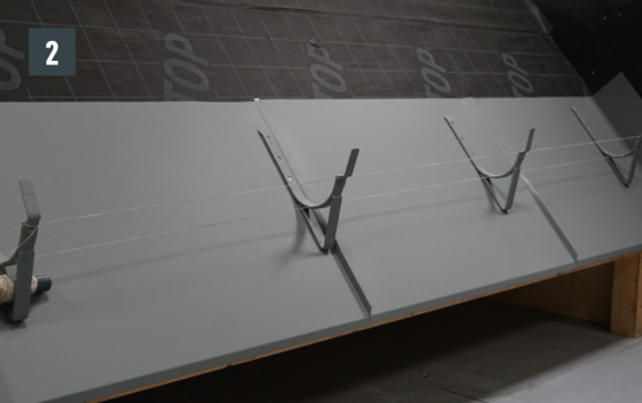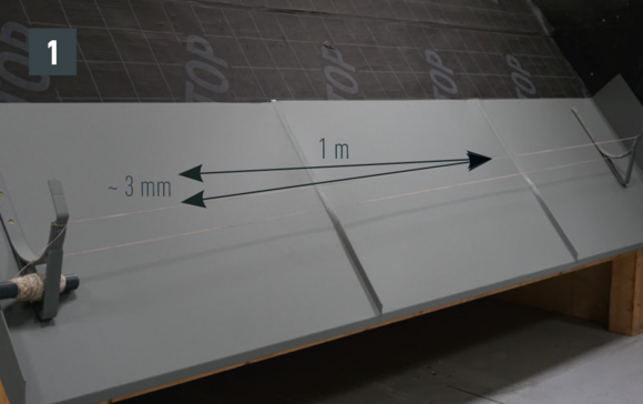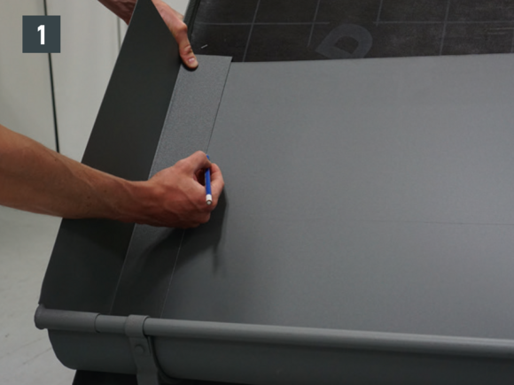 Bøy falsene slik at kantkanalen hviler minst 15 cm på kantplaten. Pass på hellingen.