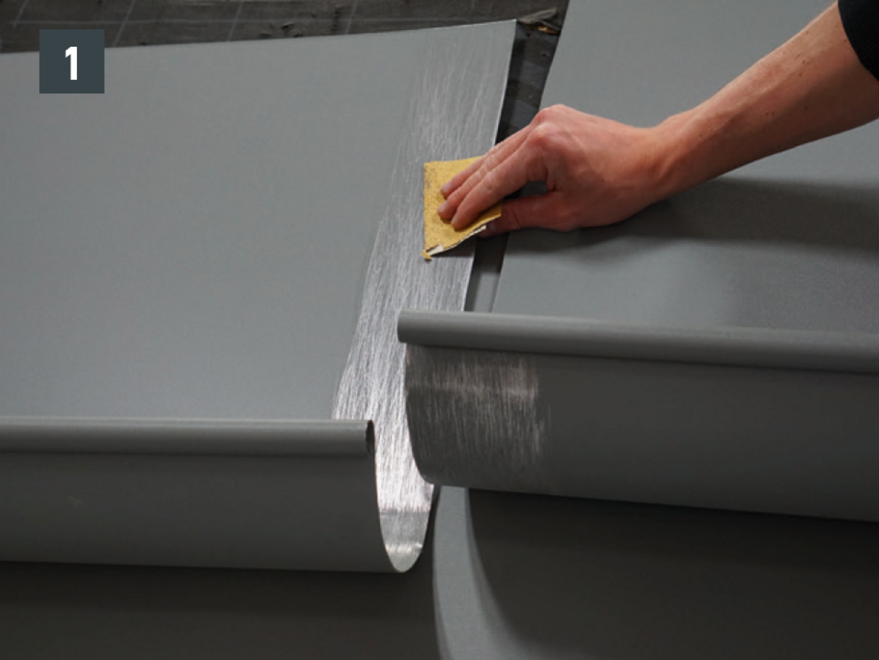 Forbindelsen kan lages som en lim- eller nagleforbindelse. Naglede forbindelser må også forsegles med PREFA spesialsilikon.