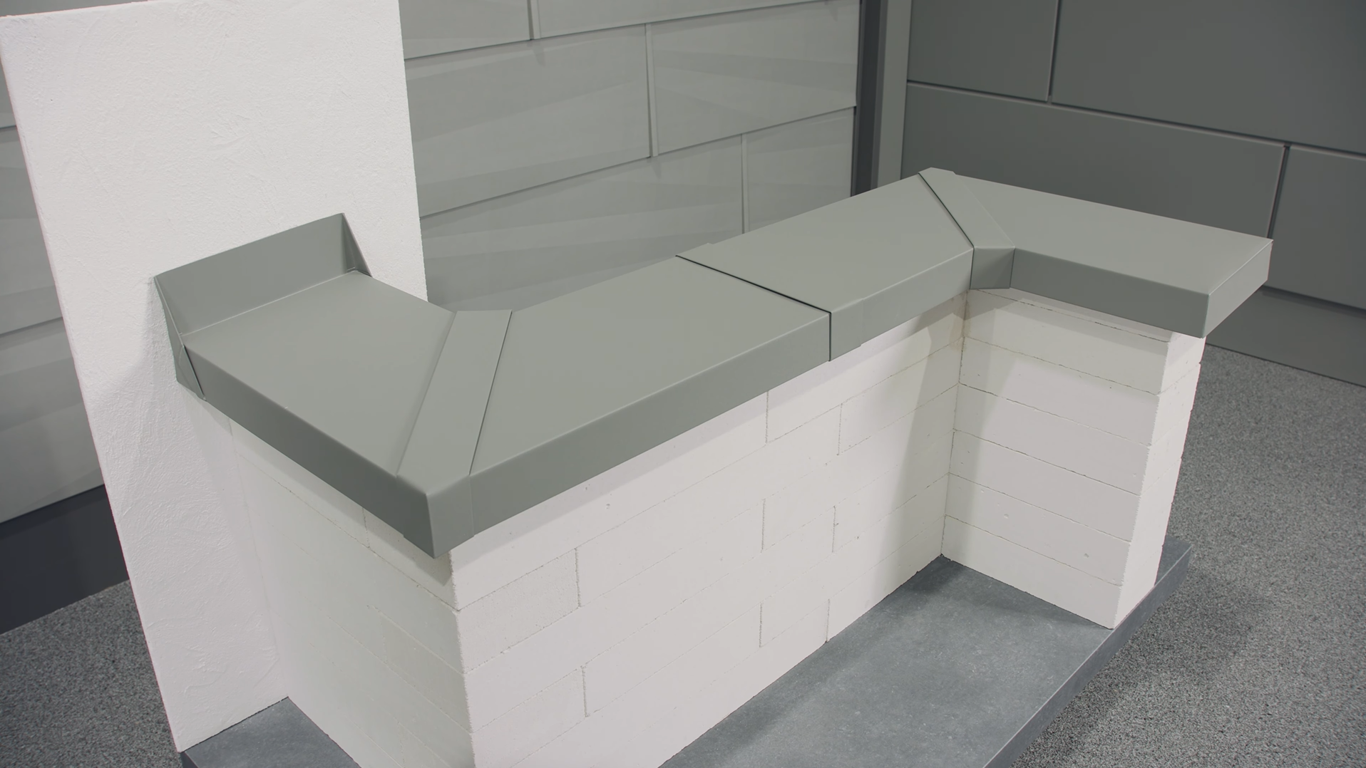 Innen- oder Außenecke mit integrierter Abkantung als Abschluss: Attika-Mauerabdeckung:
